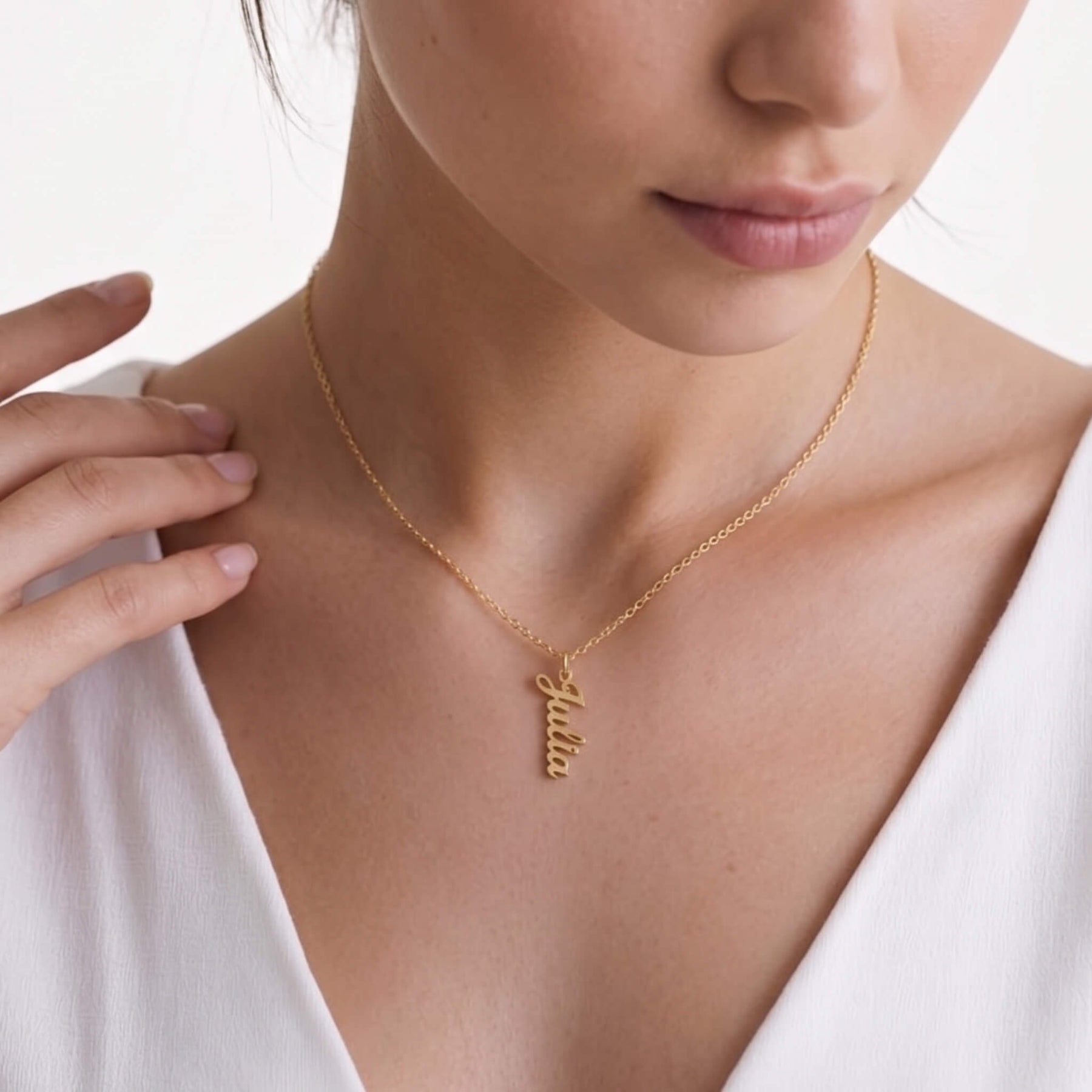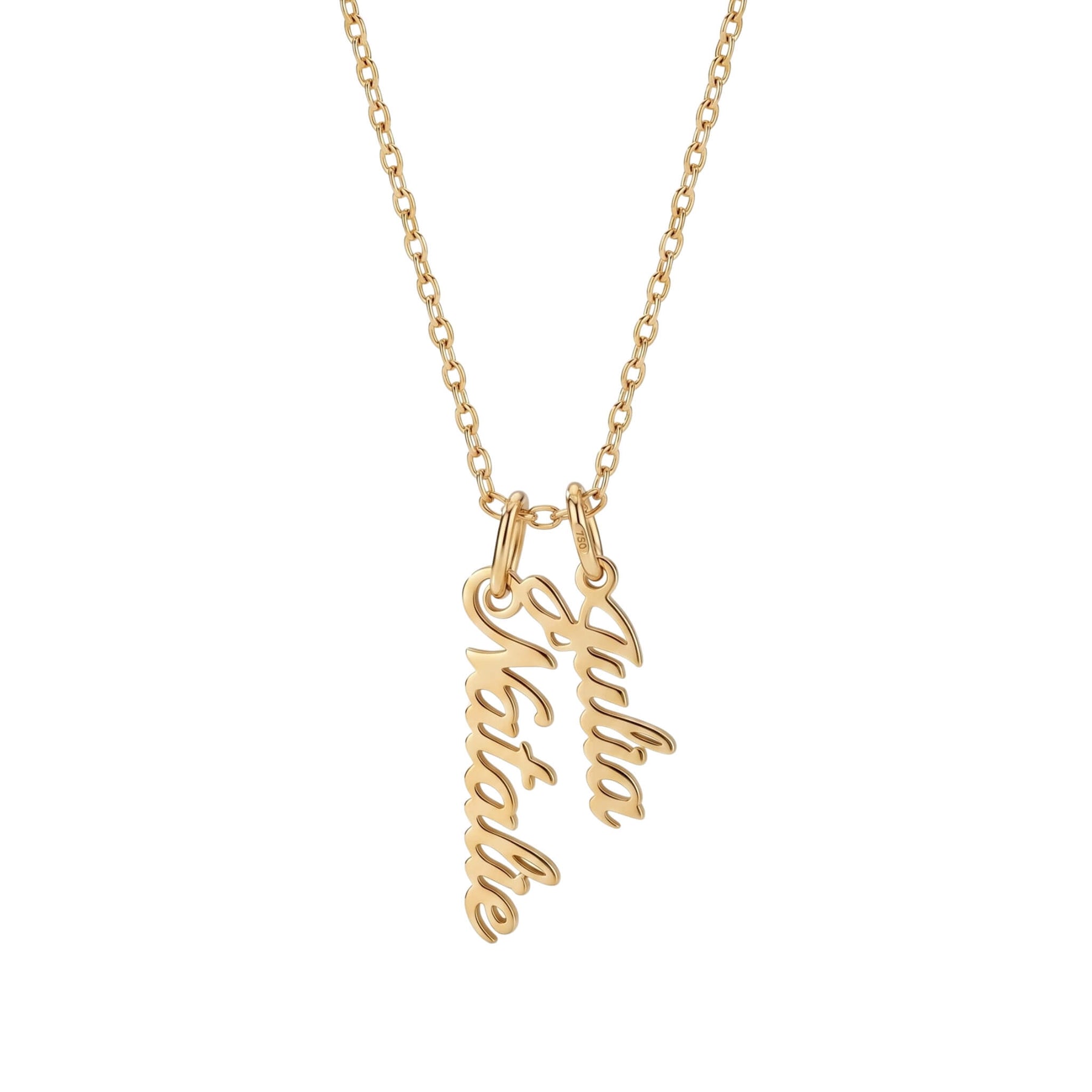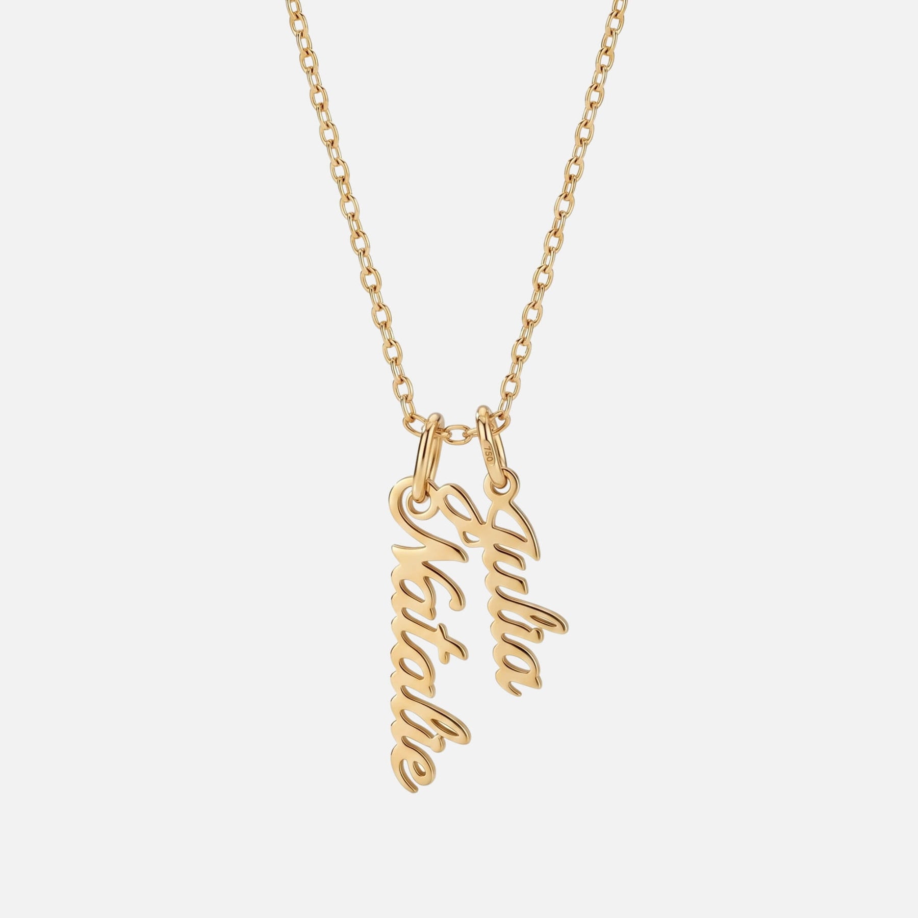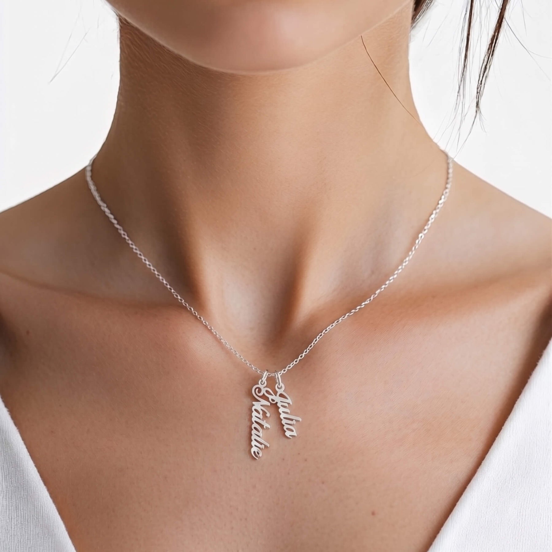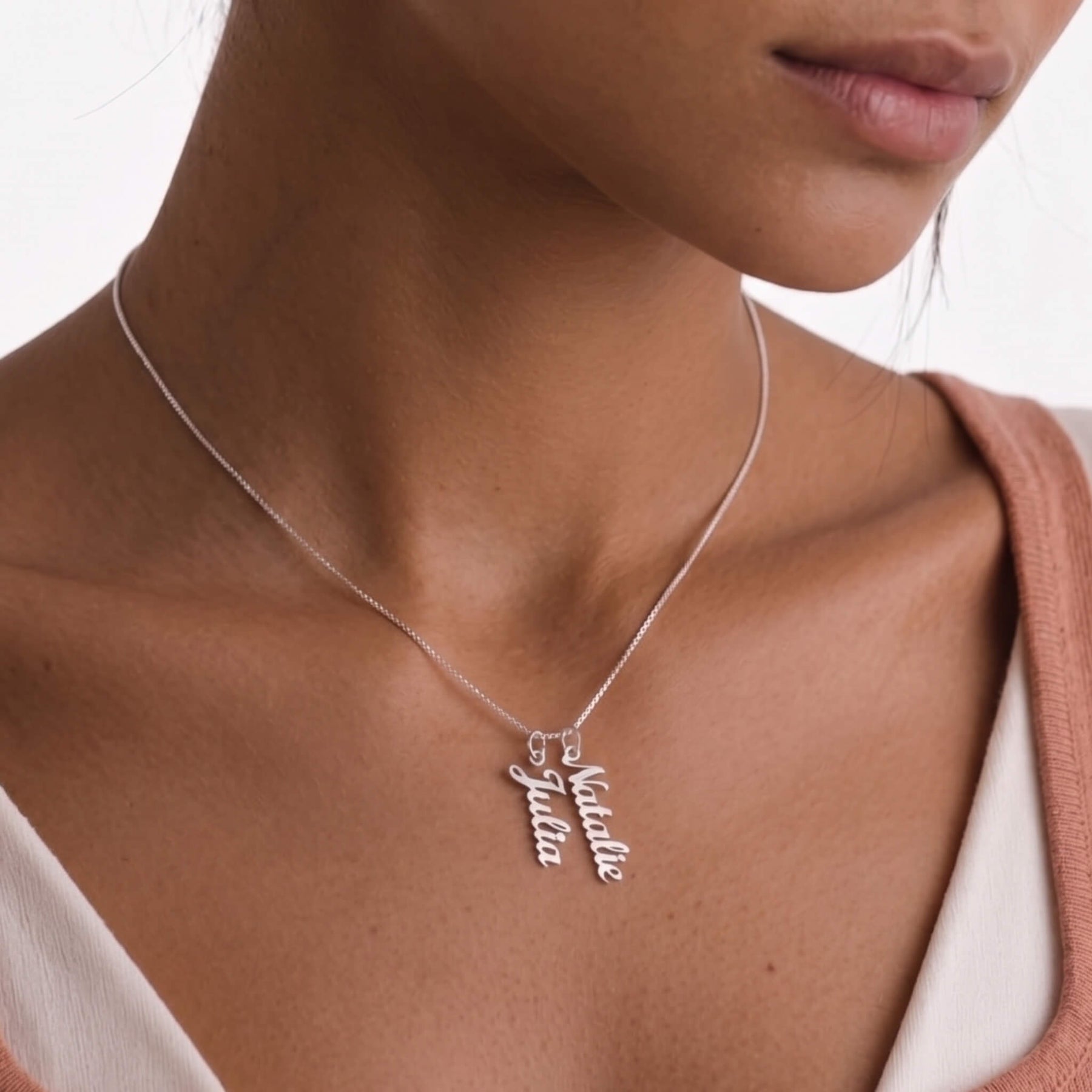 Les prénoms tombent verticalement le long de la chaîne, l'un après l'autre, comme un décompte silencieux des personnes qui font de votre vie ce qu'elle est. Un prénom ou deux – chaque breloque porte sa propre histoire, assez près pour toujours se faire sentir.